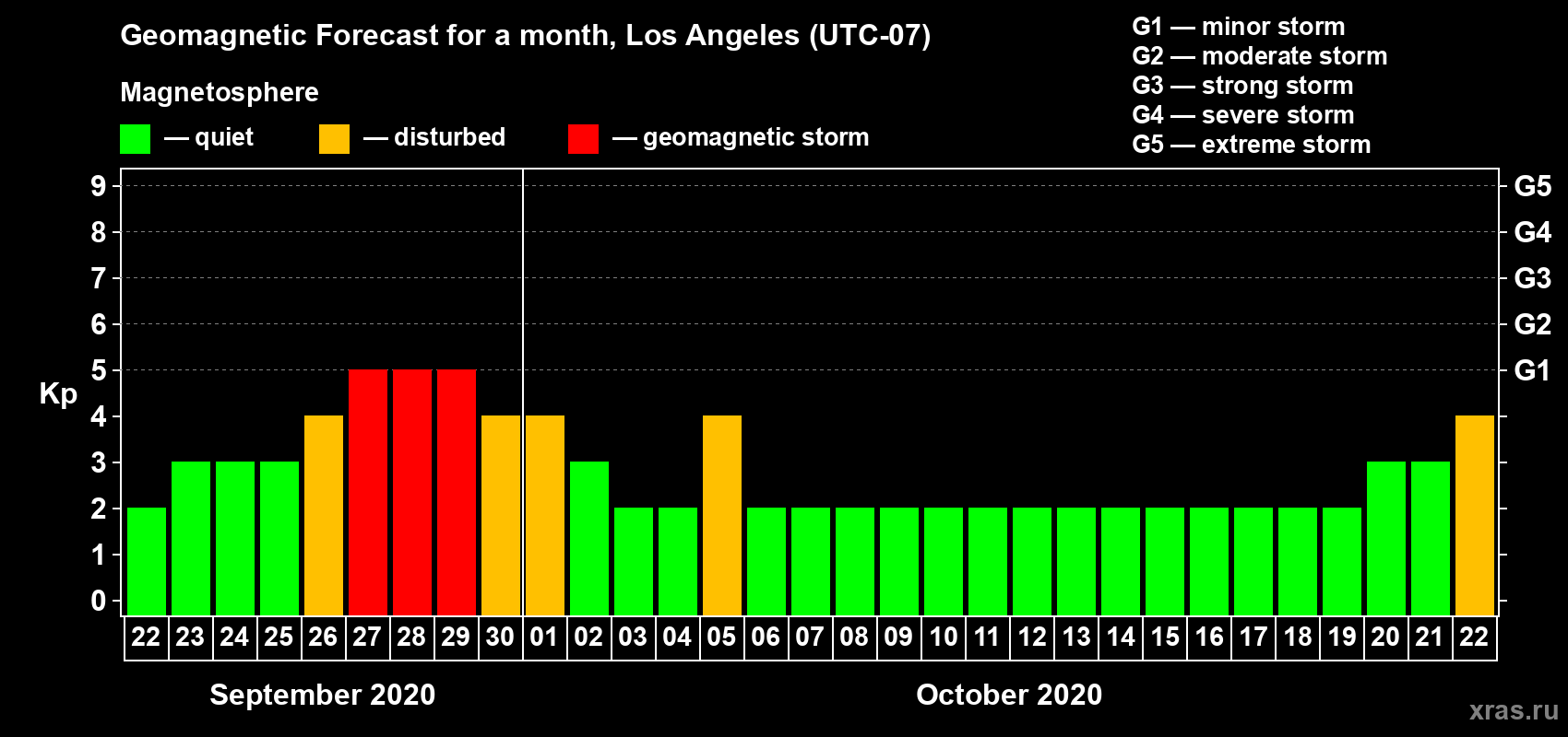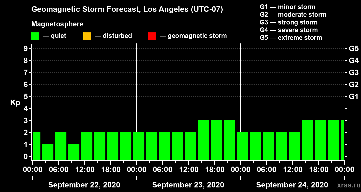 Geomagnetic storm forecast in Los Angeles for Sep 22, 2020