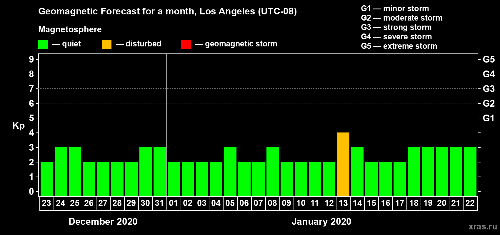 Geomagnetic activity forecast in Los Angeles — Dec 23, 2019