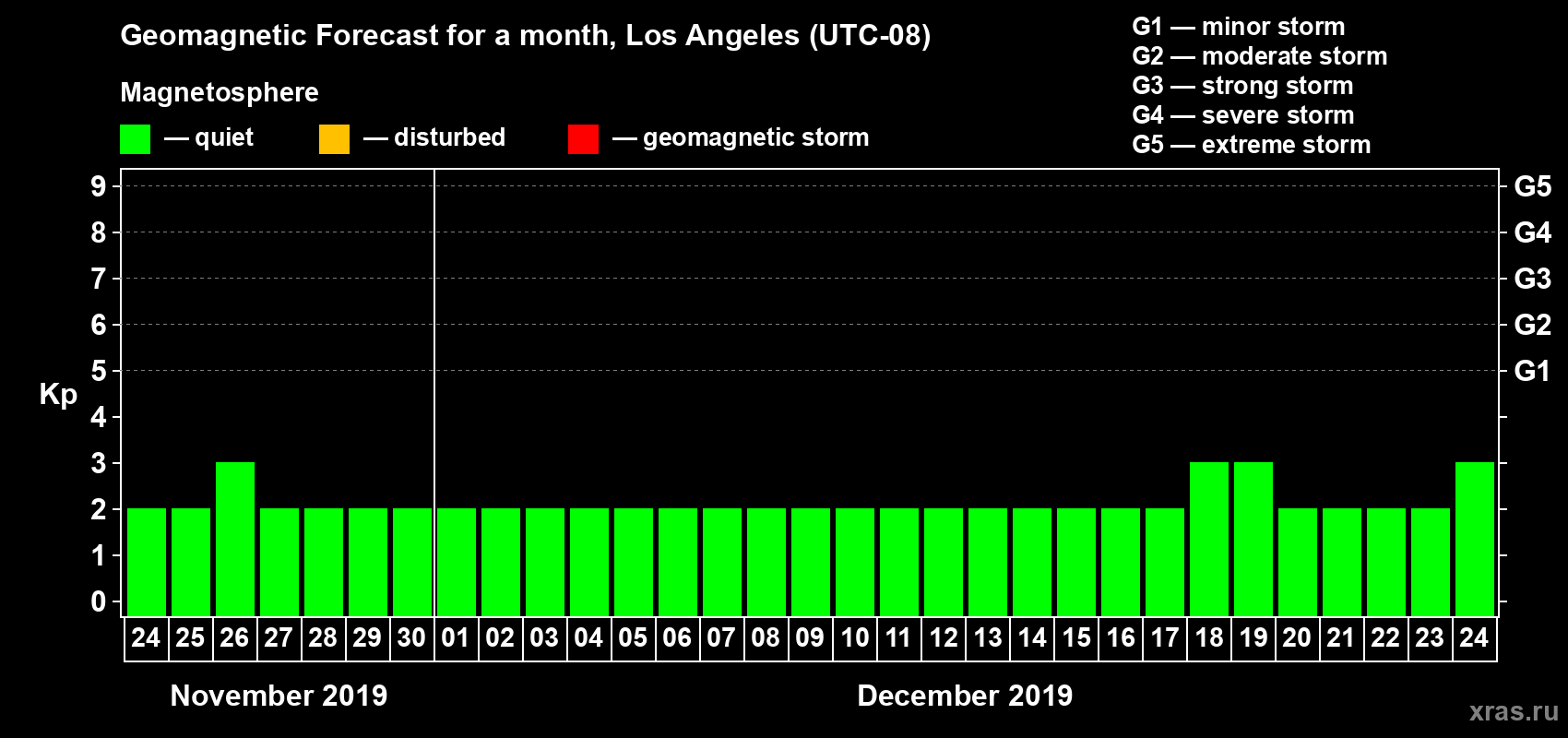 Geomagnetic storm forecast in Los Angeles for Nov 24, 2019