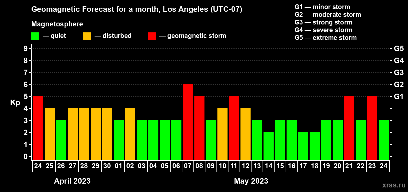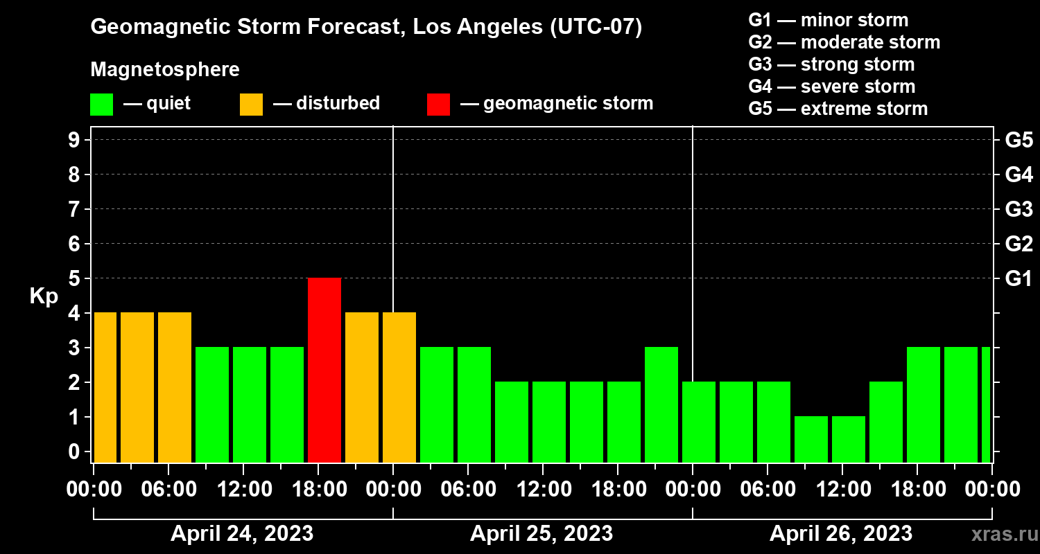Geomagnetic storm forecast in Los Angeles for Apr 24, 2023