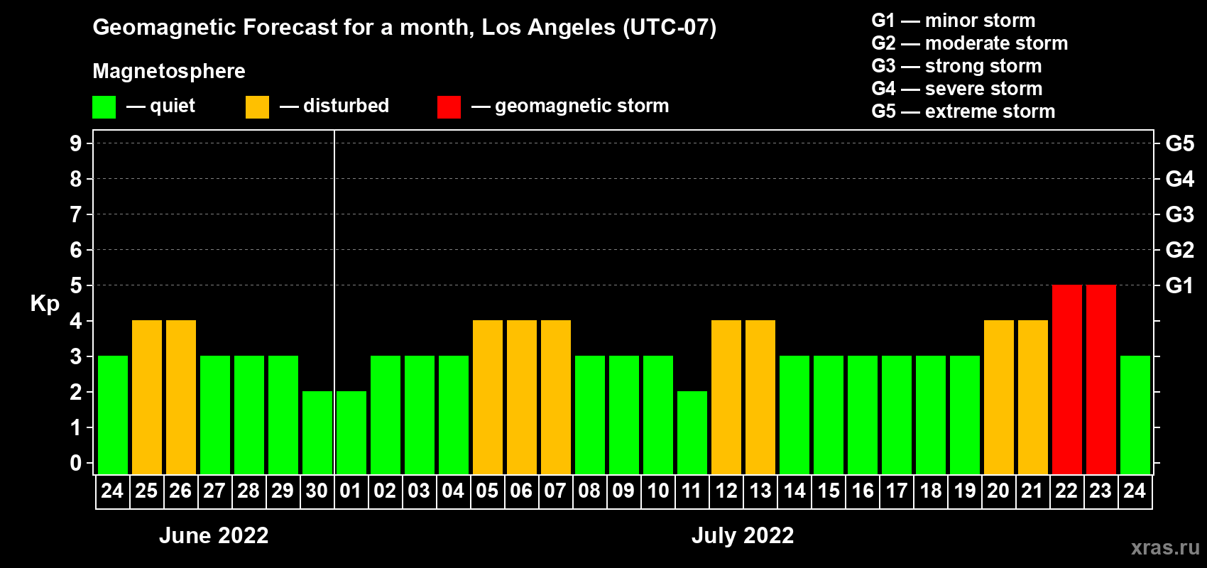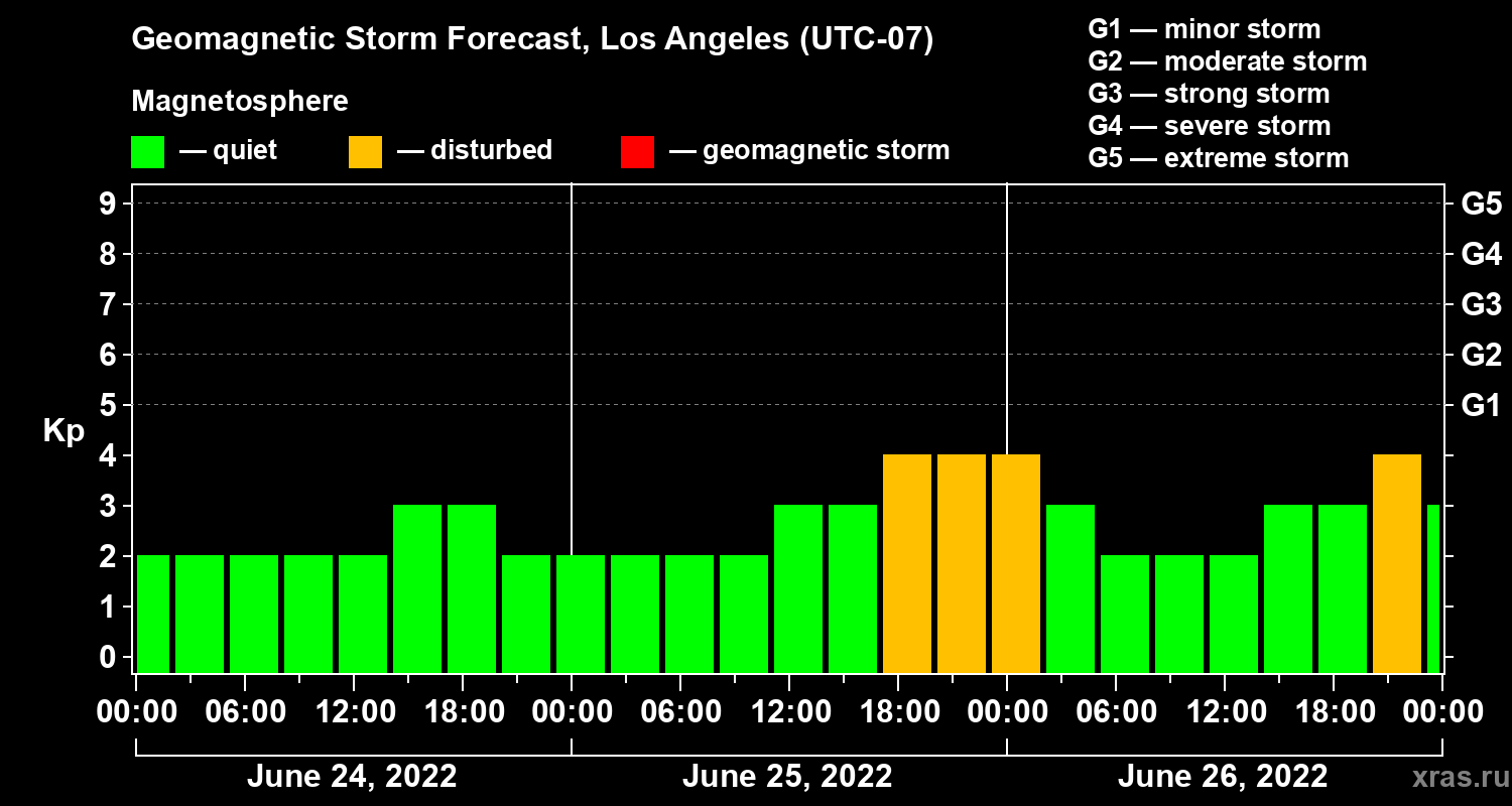 Geomagnetic storm forecast in Los Angeles for Jun 24, 2022