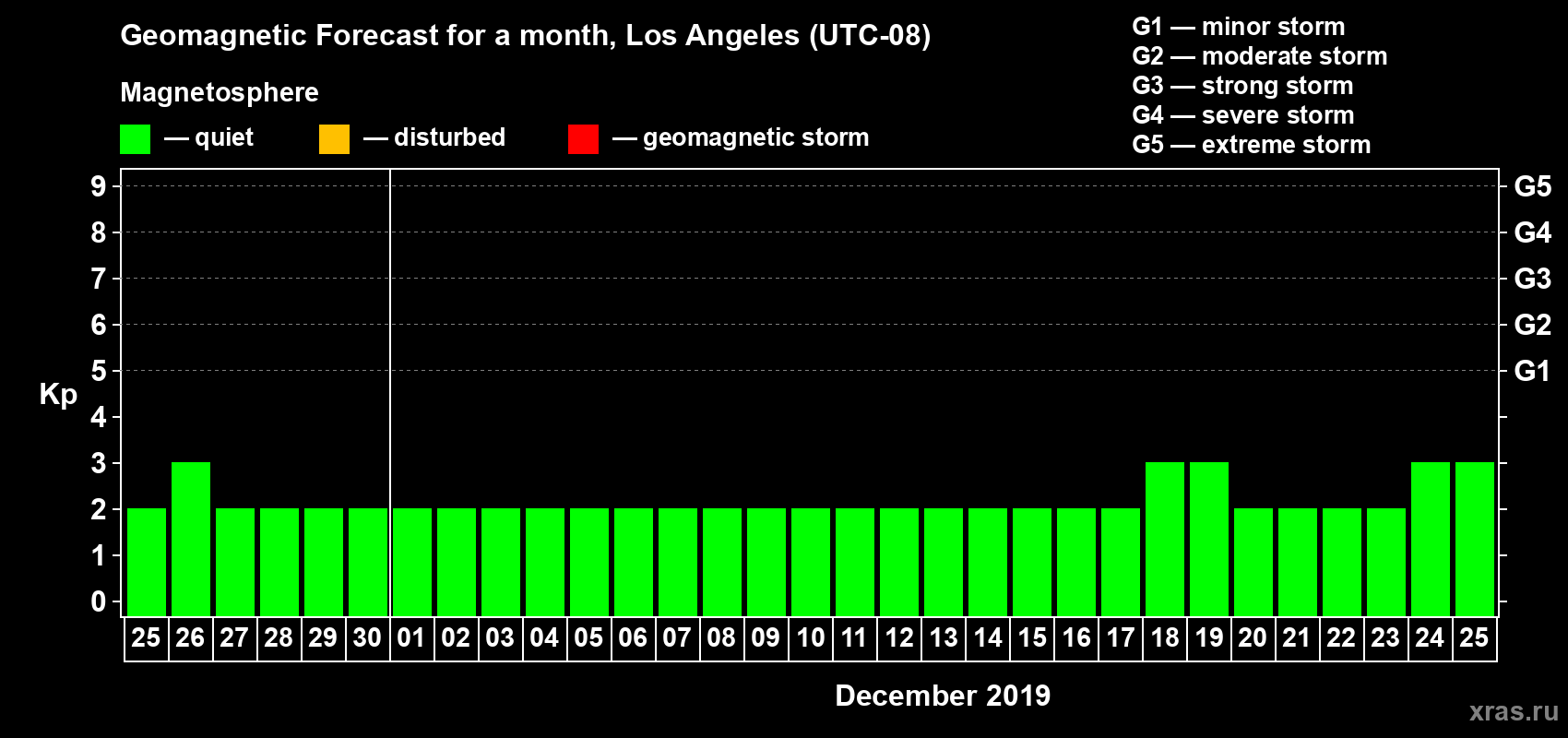 Geomagnetic storm forecast in Los Angeles for Nov 25, 2019