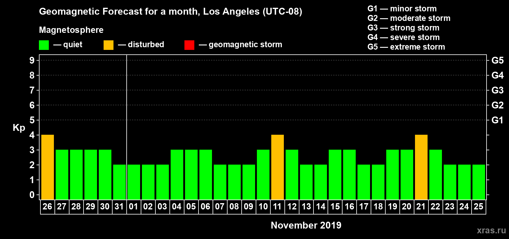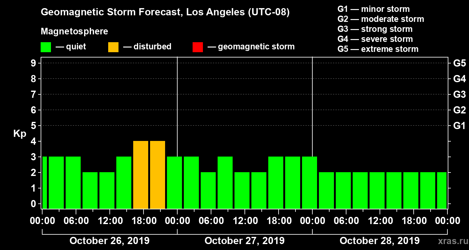 Geomagnetic storm forecast in Los Angeles for Oct 26, 2019