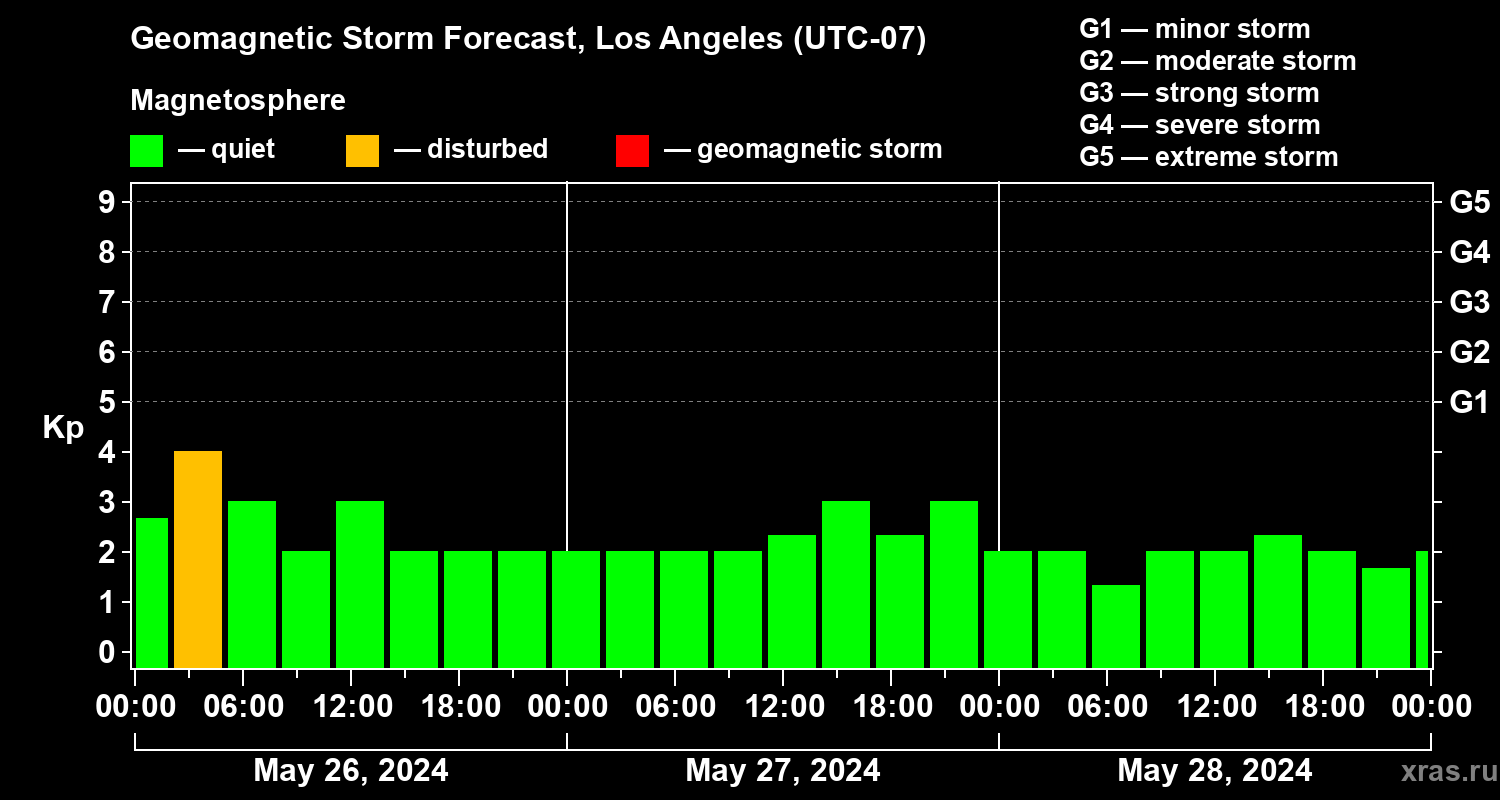 Geomagnetic activity forecast in Los Angeles — May 26, 2024