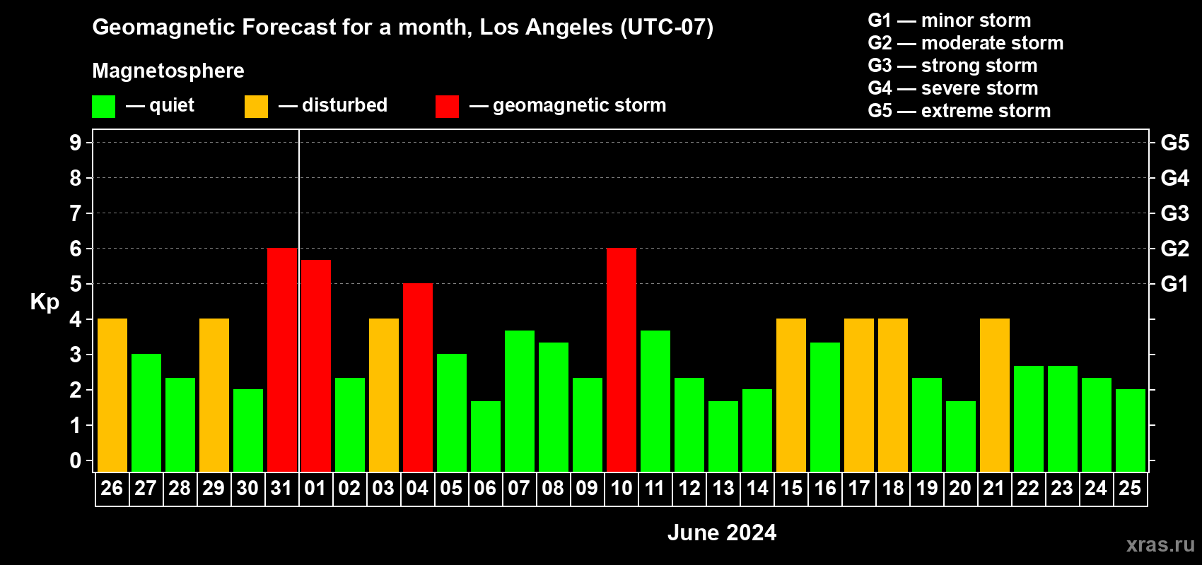 Geomagnetic storm forecast in Los Angeles for May 26, 2024