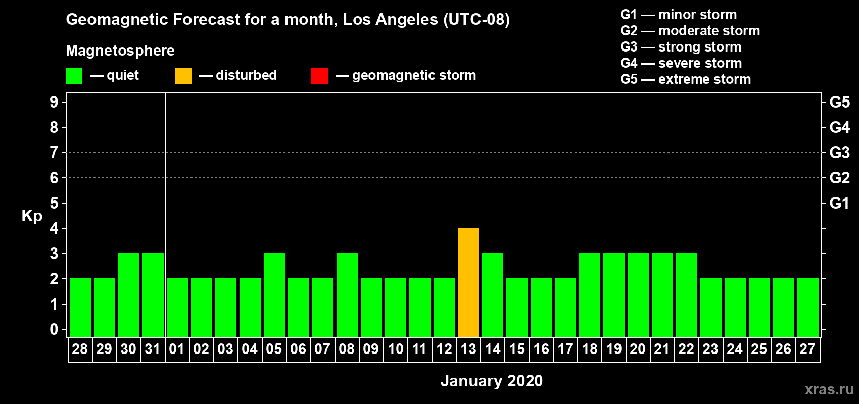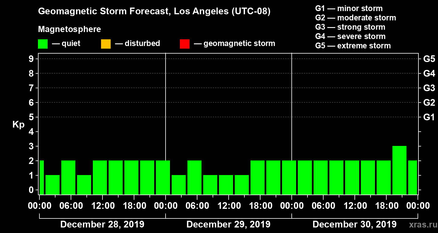 Geomagnetic storm forecast in Los Angeles for Dec 28, 2019