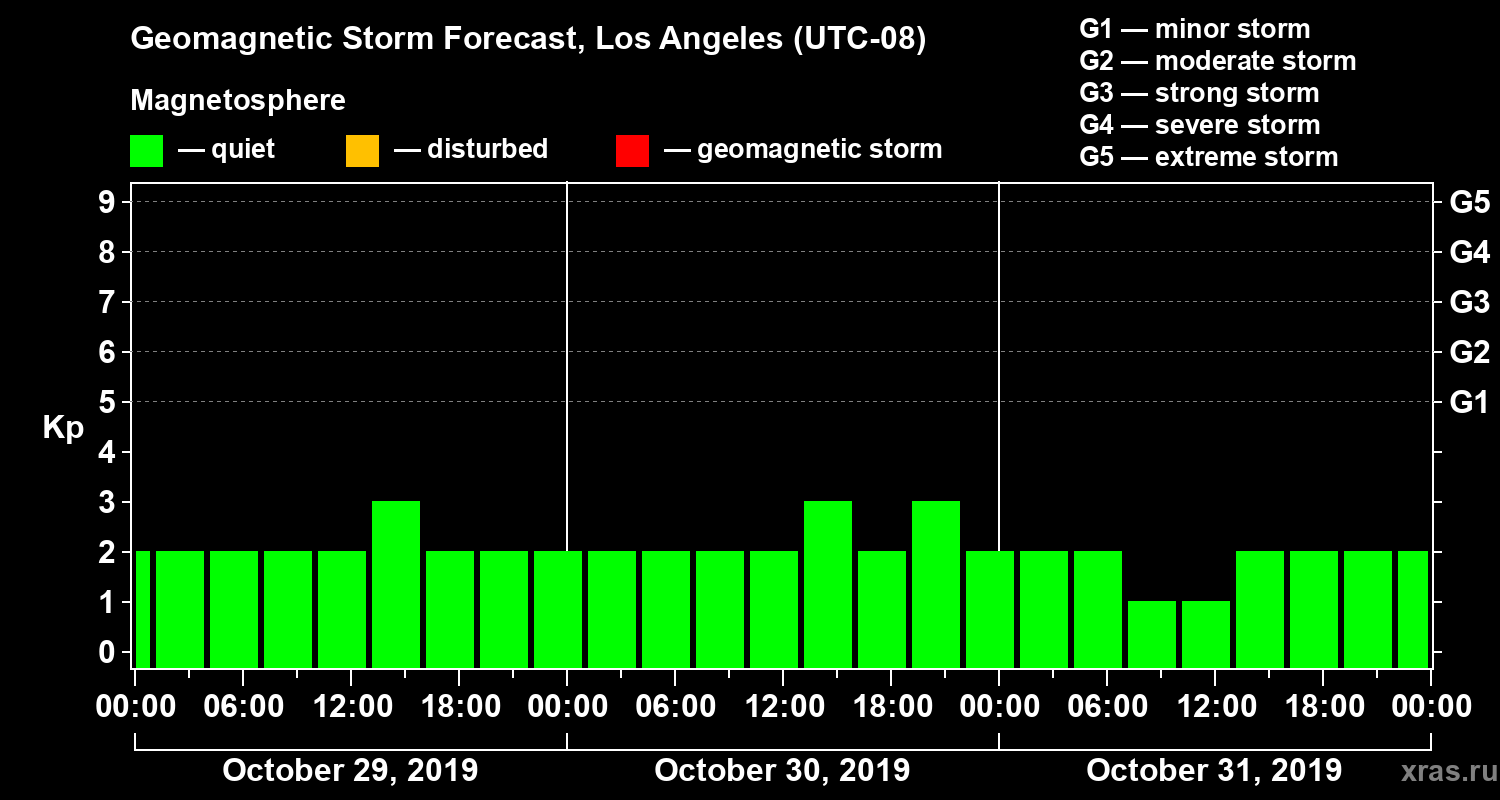 Geomagnetic storm forecast in Los Angeles for Oct 29, 2019