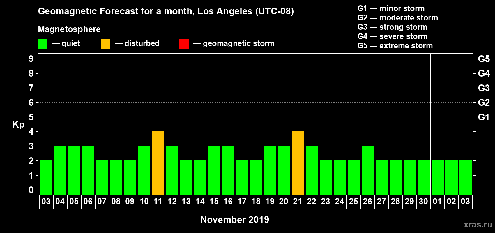 Geomagnetic storm forecast in Los Angeles for Nov 03, 2019
