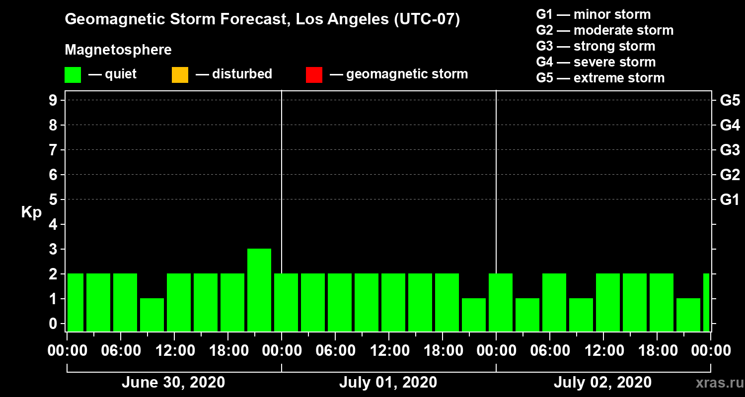 Geomagnetic storm forecast in Los Angeles for Jun 30, 2020