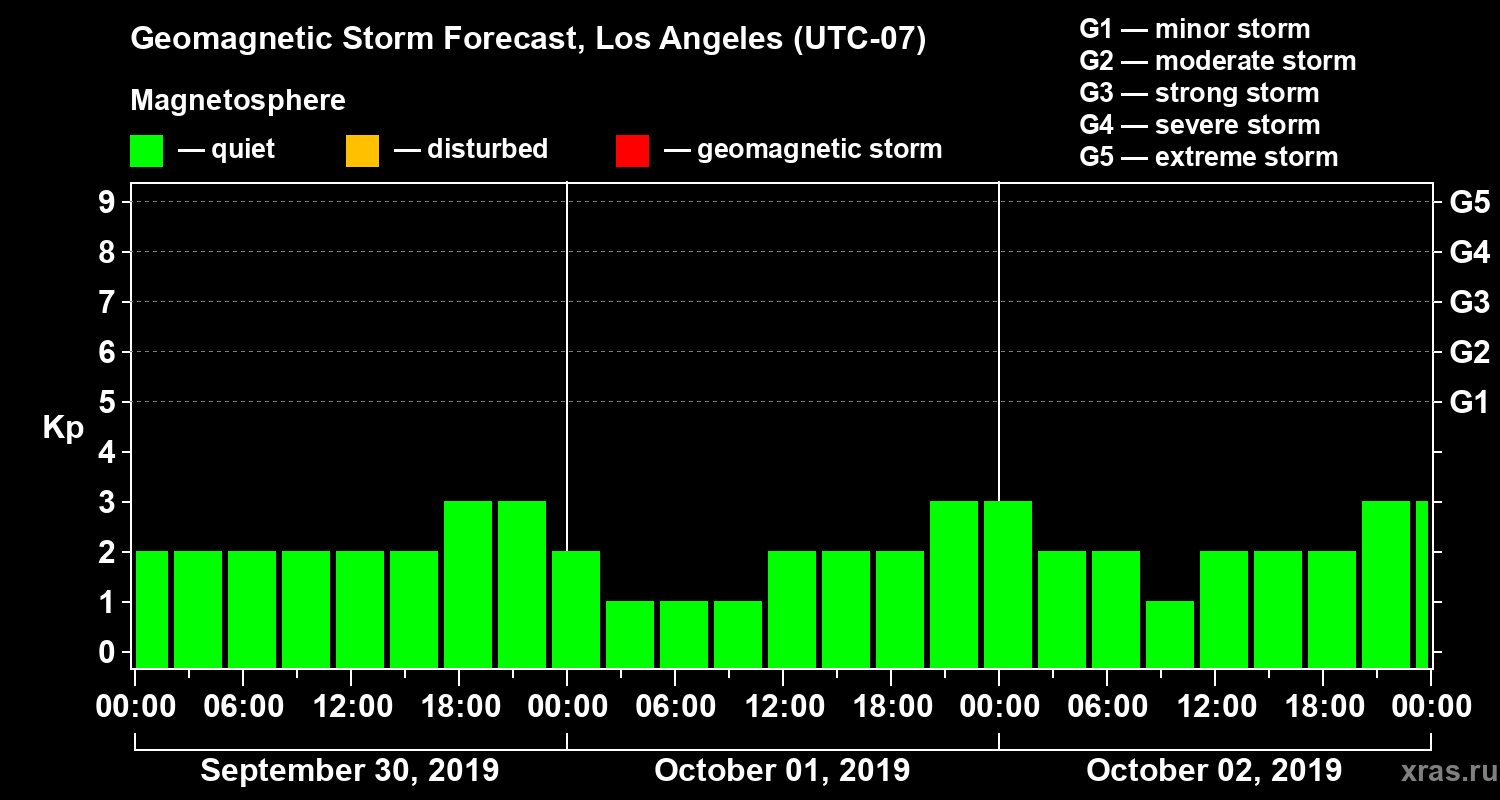 Geomagnetic storm forecast in Los Angeles for Sep 30, 2019