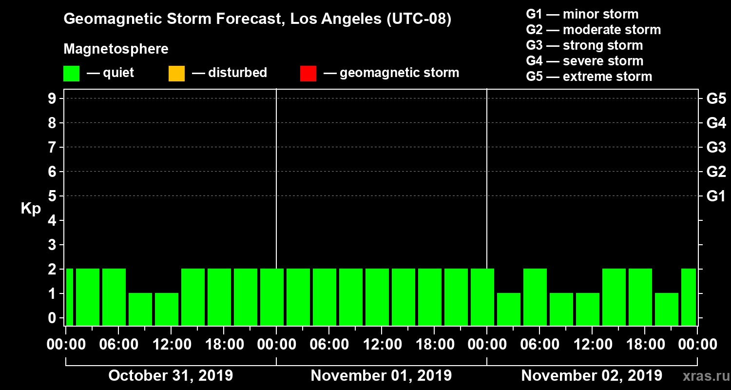 Geomagnetic storm forecast in Los Angeles for Oct 31, 2019