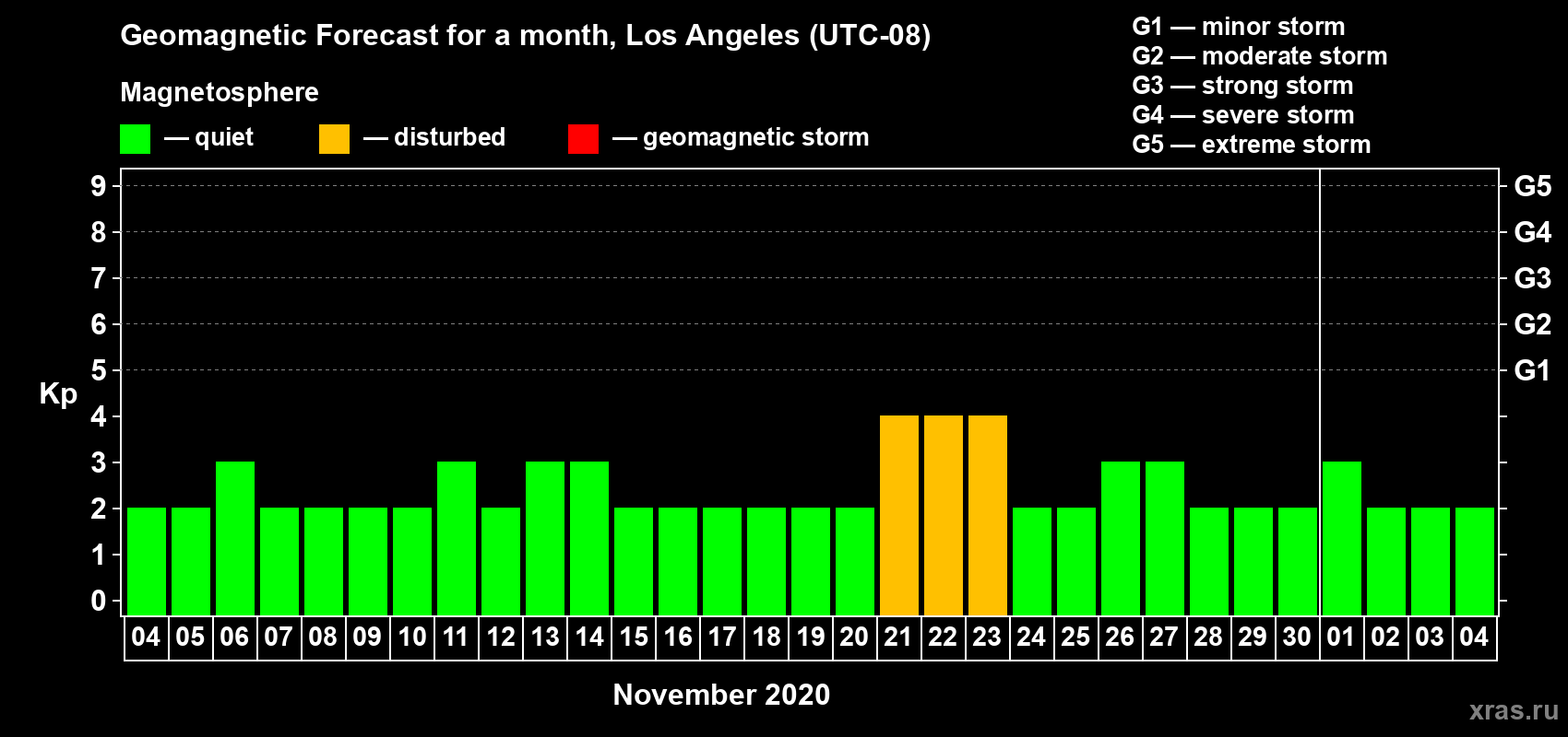 Geomagnetic storm forecast in Los Angeles for Nov 04, 2020