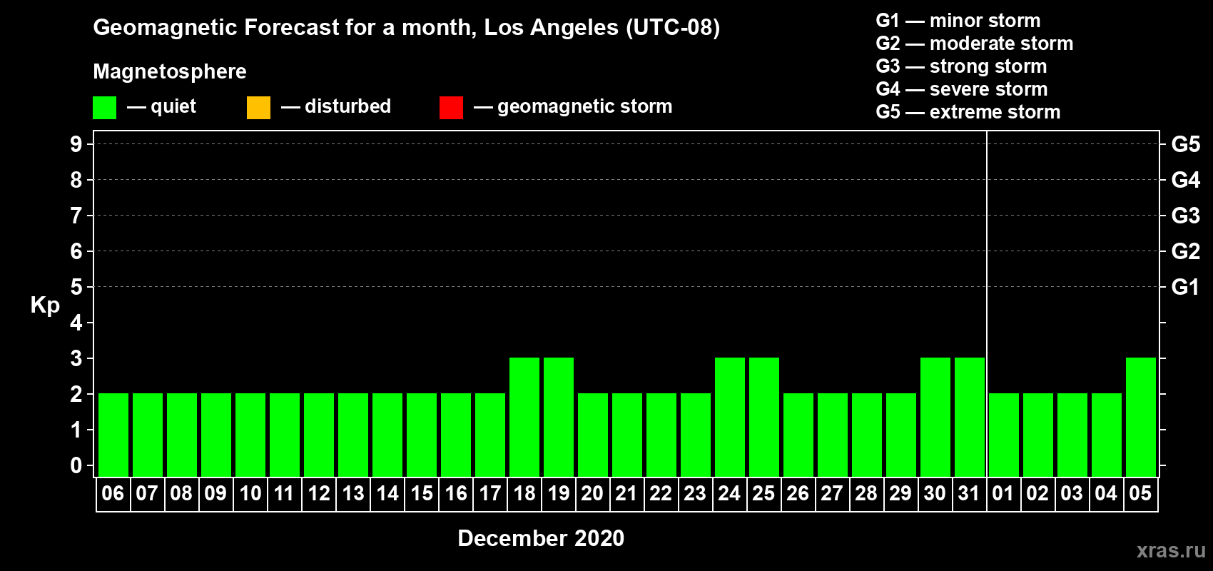 Geomagnetic storm forecast in Los Angeles for Dec 06, 2019