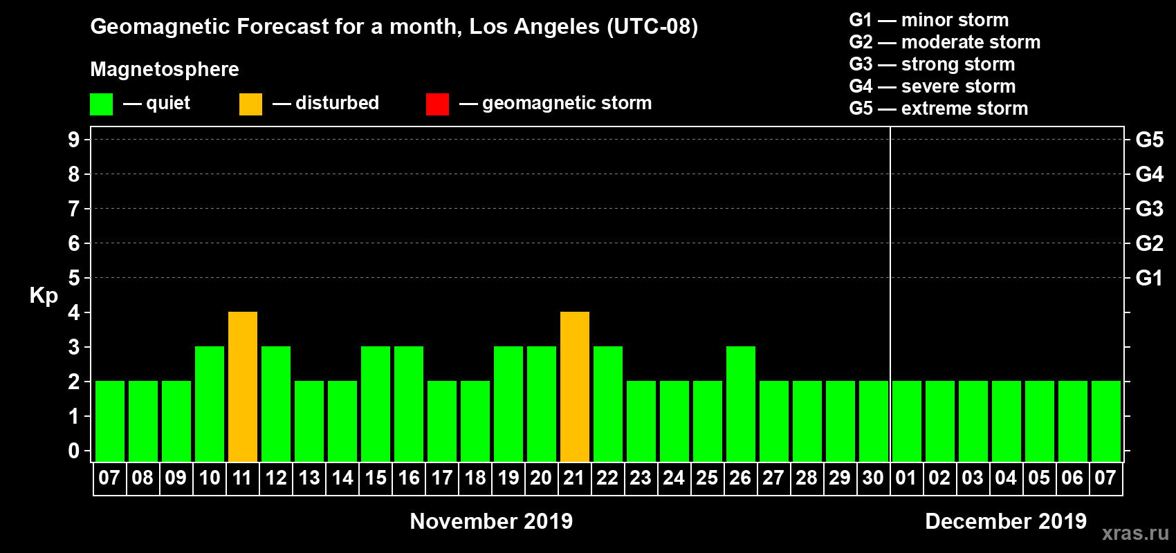 Geomagnetic storm forecast in Los Angeles for Nov 07, 2019