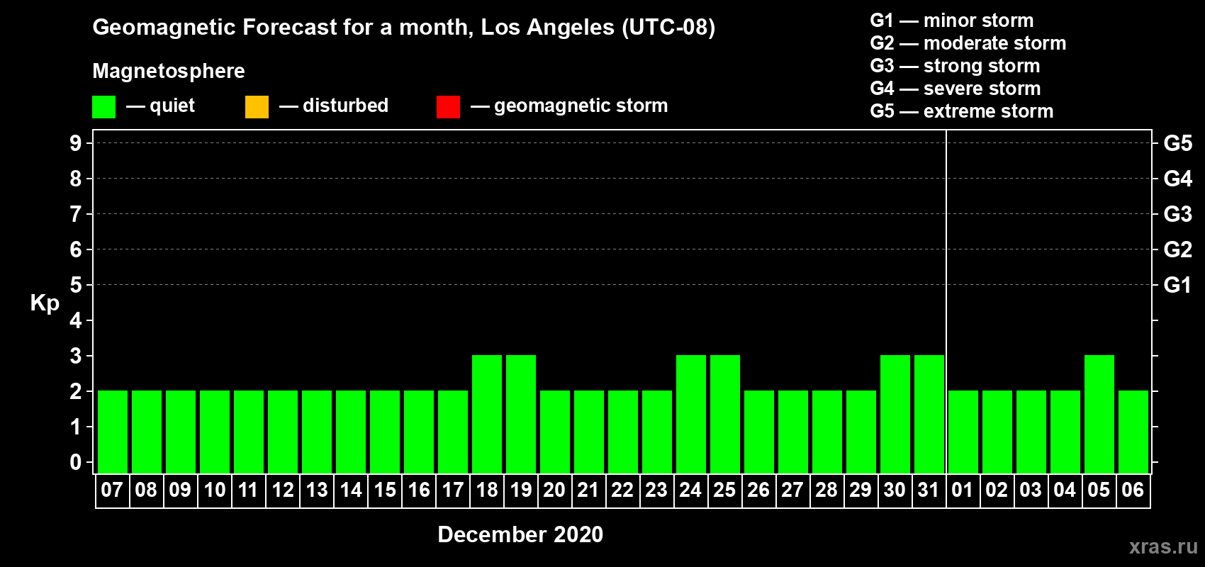 Geomagnetic storm forecast in Los Angeles for Dec 07, 2019