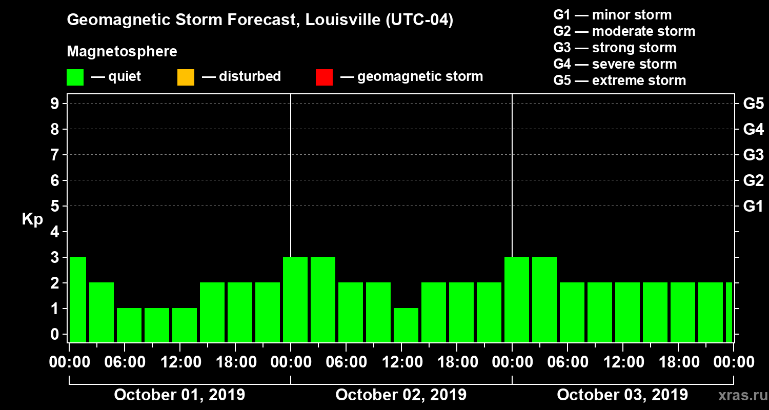 Geomagnetic storm forecast in Louisville for Oct 01, 2019