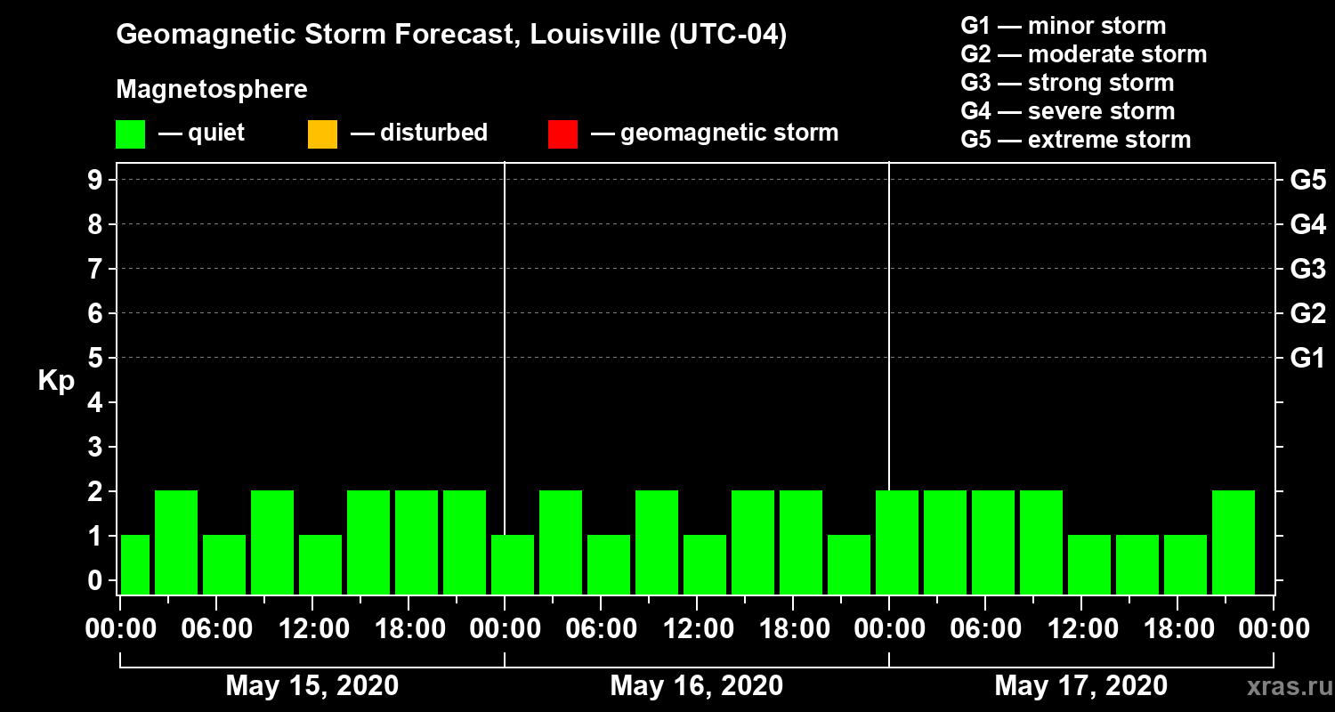 Geomagnetic storm forecast in Louisville for May 15, 2020