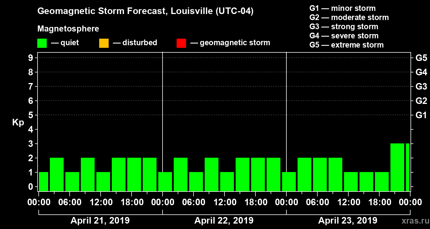 Geomagnetic storm forecast in Louisville for Apr 21, 2019