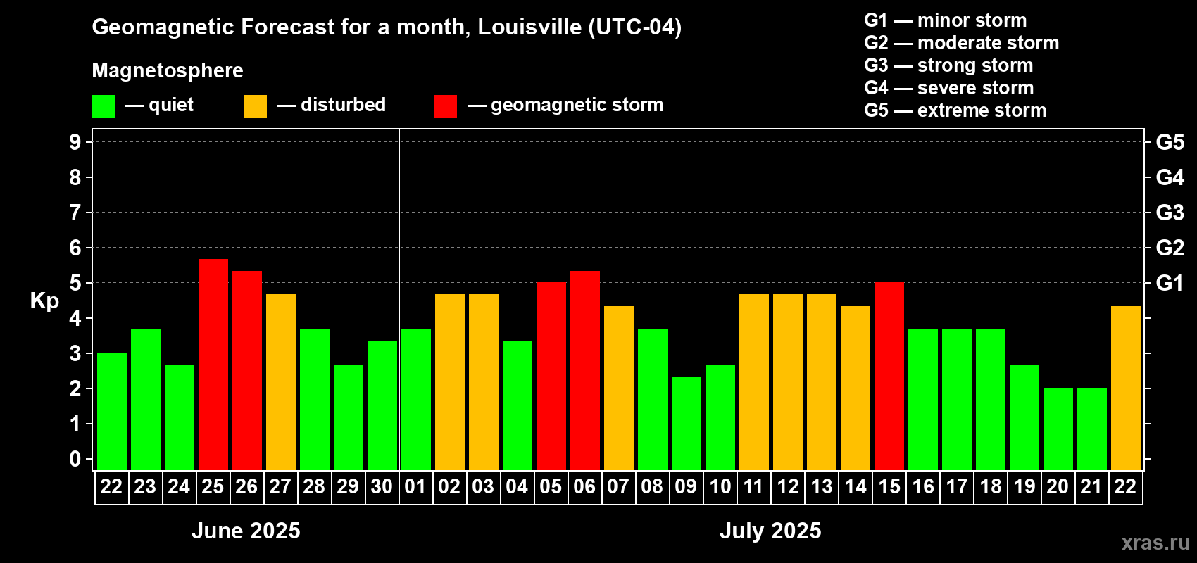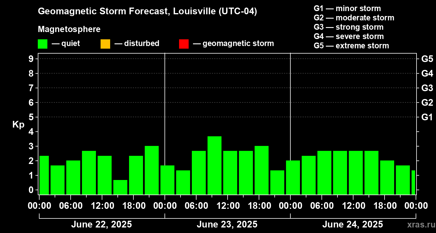 Geomagnetic storm forecast in Louisville for Jun 22, 2025