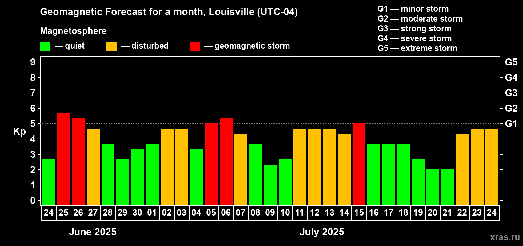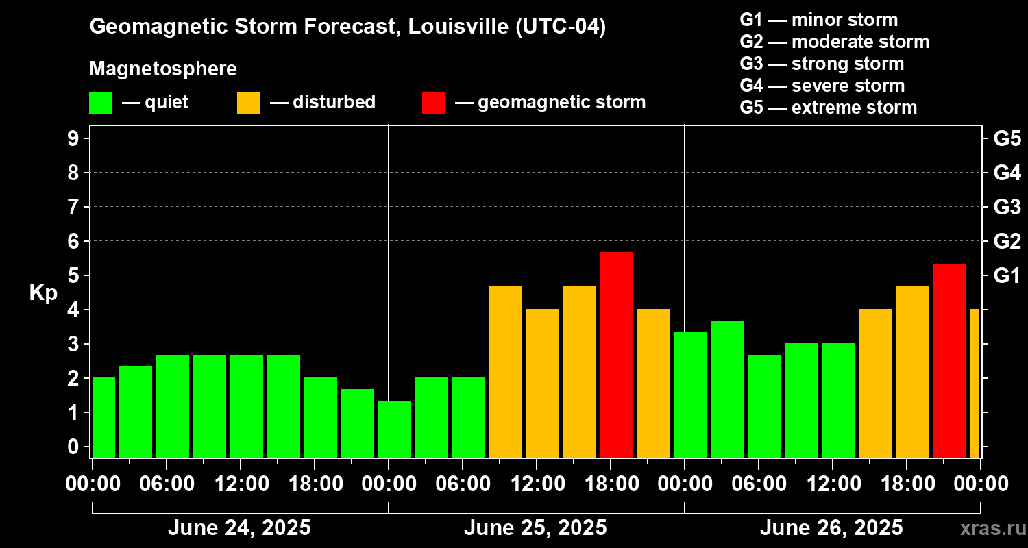 Geomagnetic storm forecast in Louisville for Jun 24, 2025
