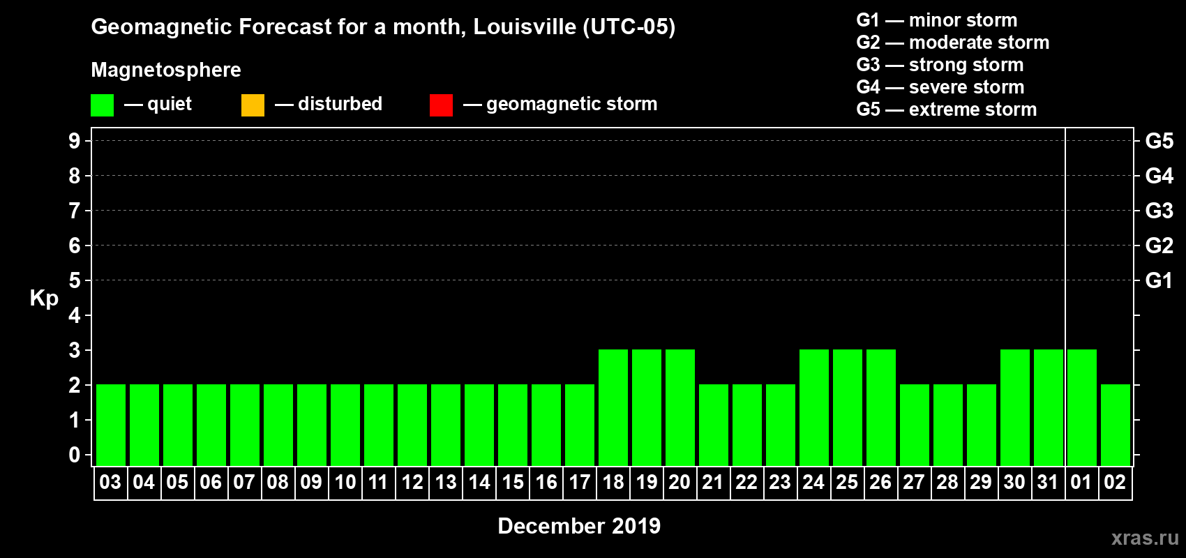 Geomagnetic storm forecast in Louisville for Dec 03, 2019