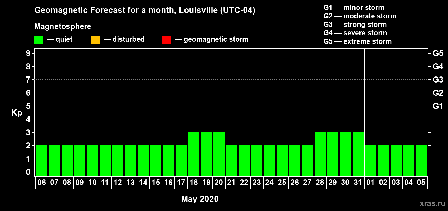 Geomagnetic storm forecast in Louisville for May 06, 2020