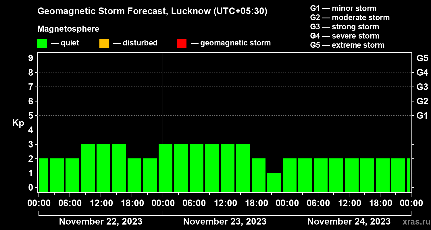 Geomagnetic activity forecast in Lucknow — Nov 22, 2023