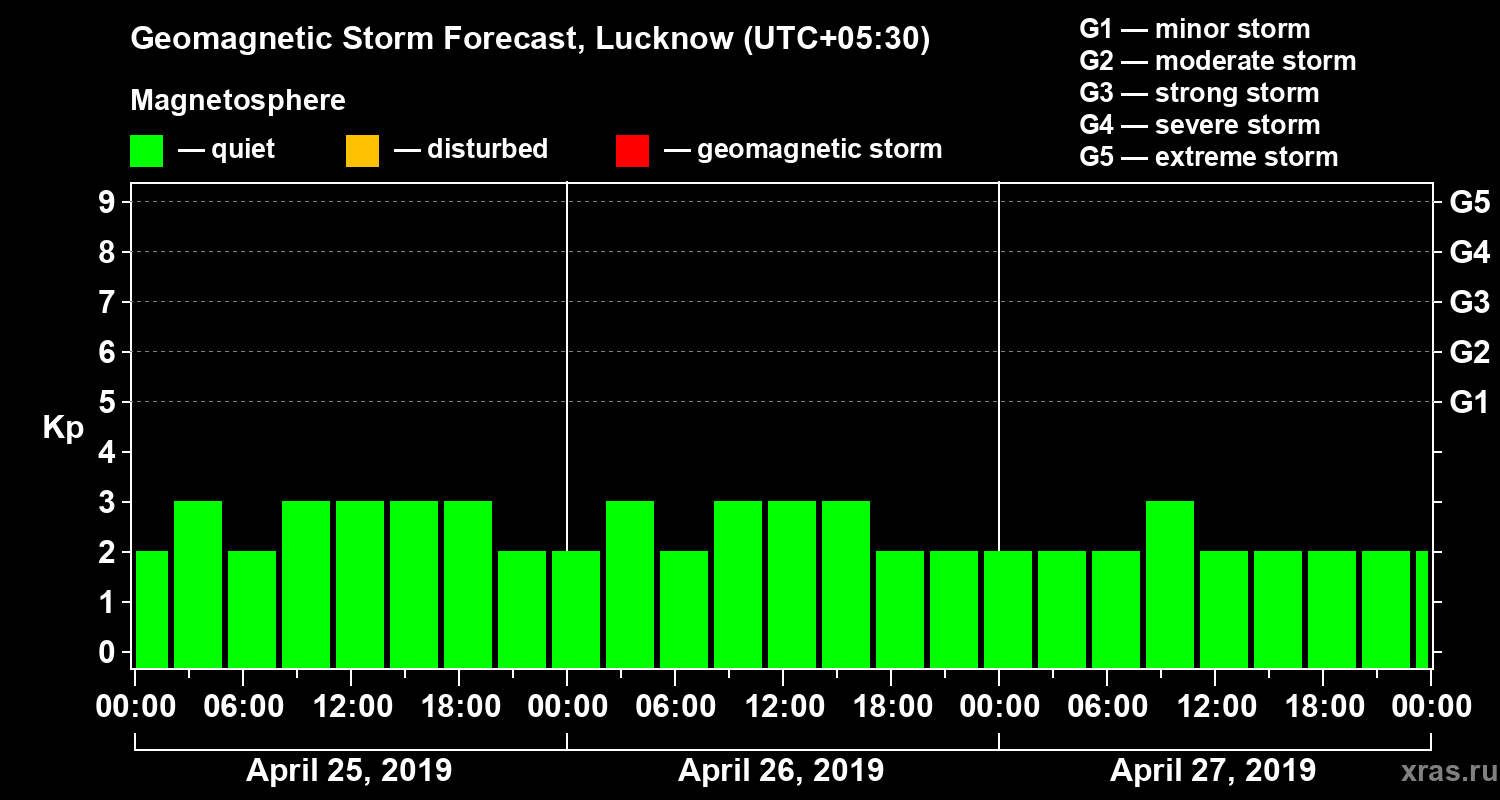 Geomagnetic storm forecast in Lucknow for Apr 25, 2019