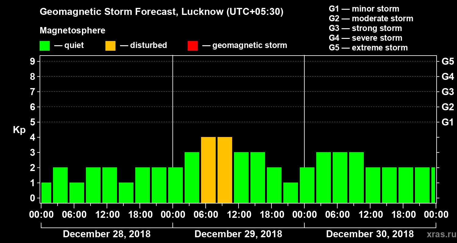 Geomagnetic storm forecast in Lucknow for Dec 28, 2018