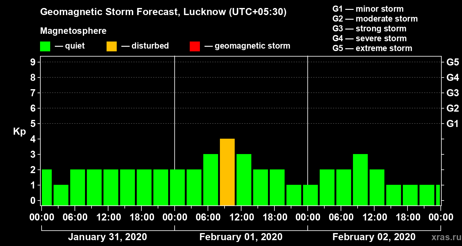 Geomagnetic storm forecast in Lucknow for Jan 31, 2020