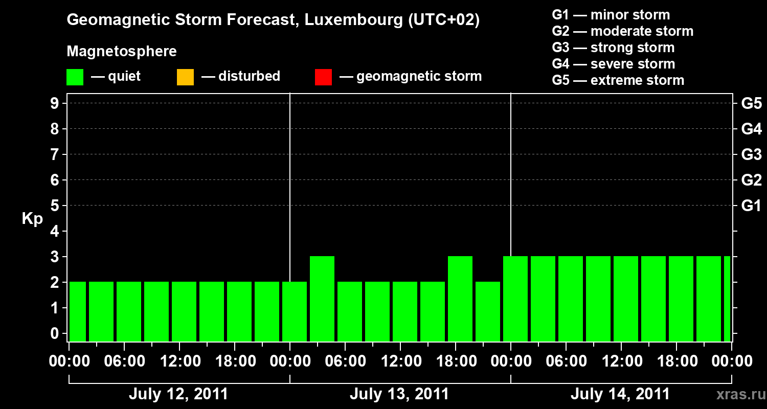 Geomagnetic storm forecast in Luxembourg for Jul 12, 2011