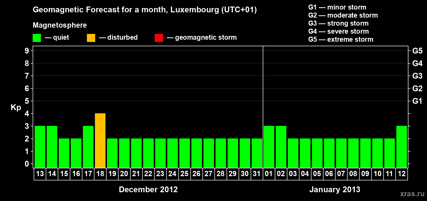 Geomagnetic storm forecast in Luxembourg for Dec 13, 2012