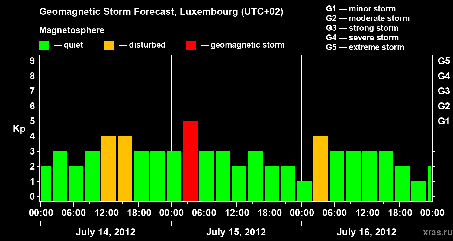 Geomagnetic storm forecast in Luxembourg for Jul 14, 2012