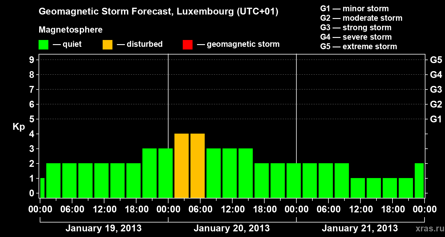 Geomagnetic storm forecast in Luxembourg for Jan 19, 2013