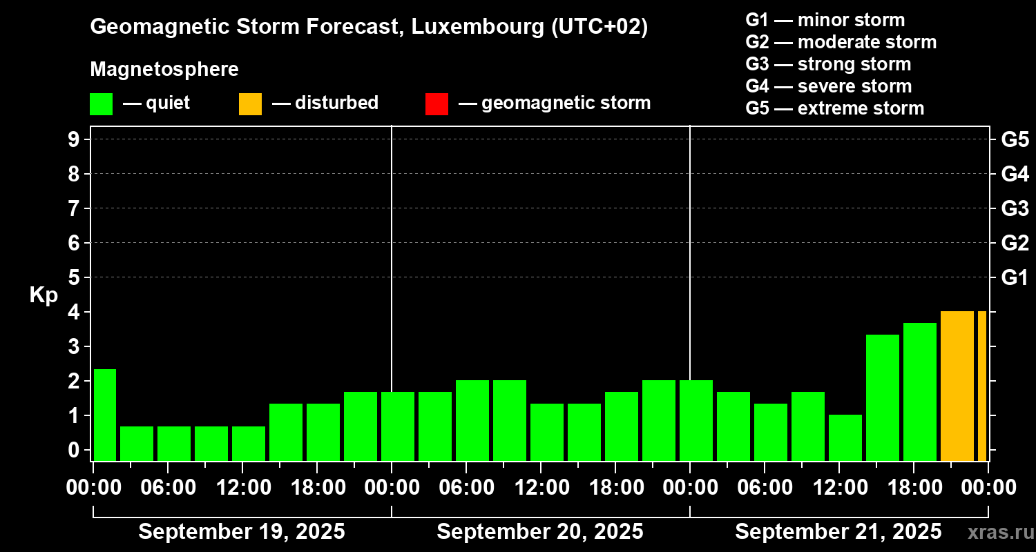 Geomagnetic storm forecast in Luxembourg for Sep 19, 2025