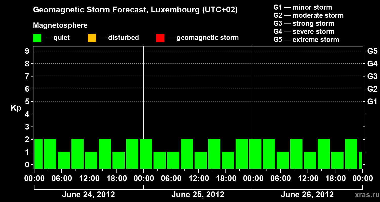 Geomagnetic storm forecast in Luxembourg for Jun 24, 2012