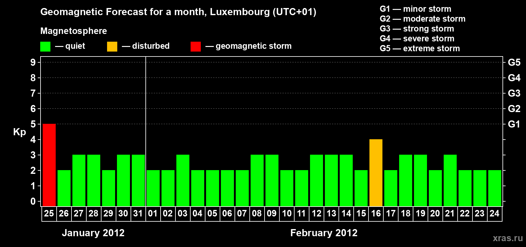 Geomagnetic storm forecast in Luxembourg for Jan 25, 2012