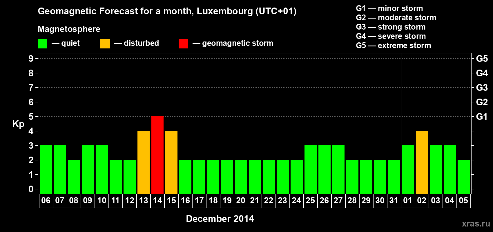 Geomagnetic storm forecast in Luxembourg for Dec 06, 2013