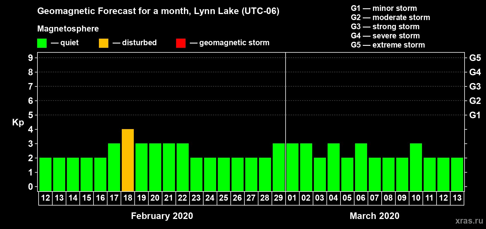 Geomagnetic storm forecast in Lynn Lake for Feb 12, 2020