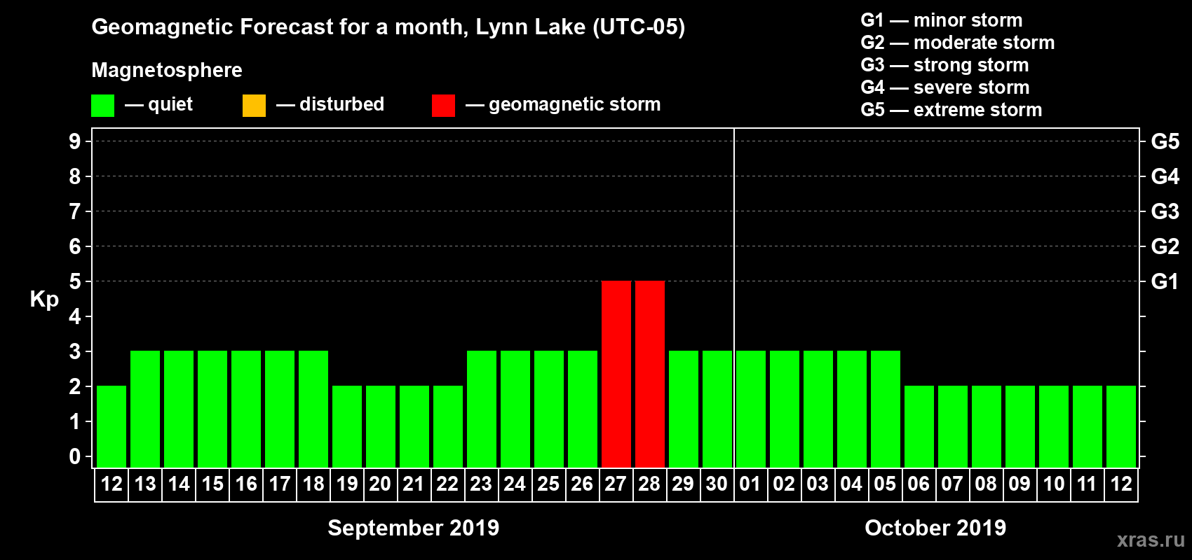 Geomagnetic storm forecast in Lynn Lake for Sep 12, 2019