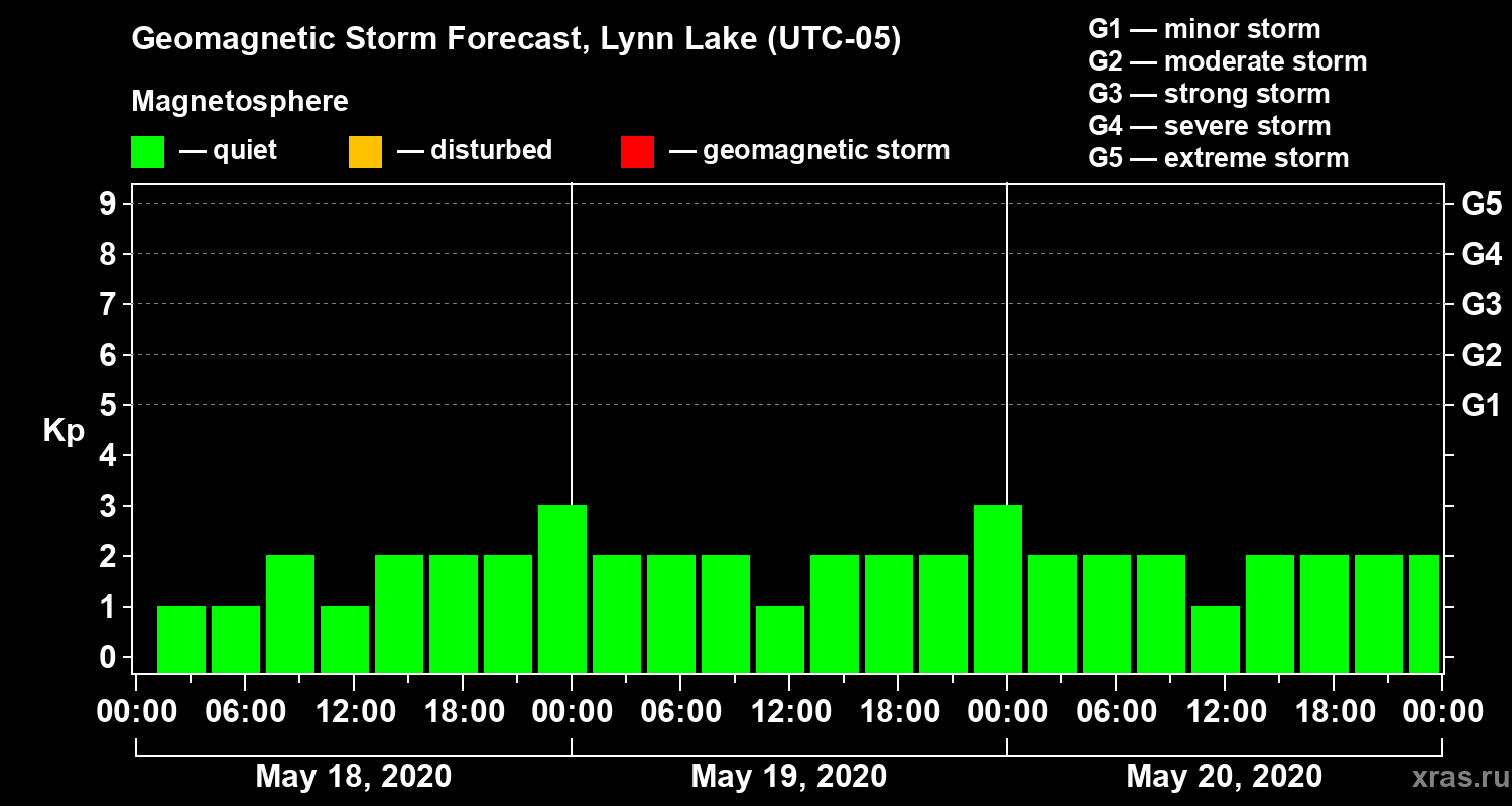 Geomagnetic storm forecast in Lynn Lake for May 18, 2020