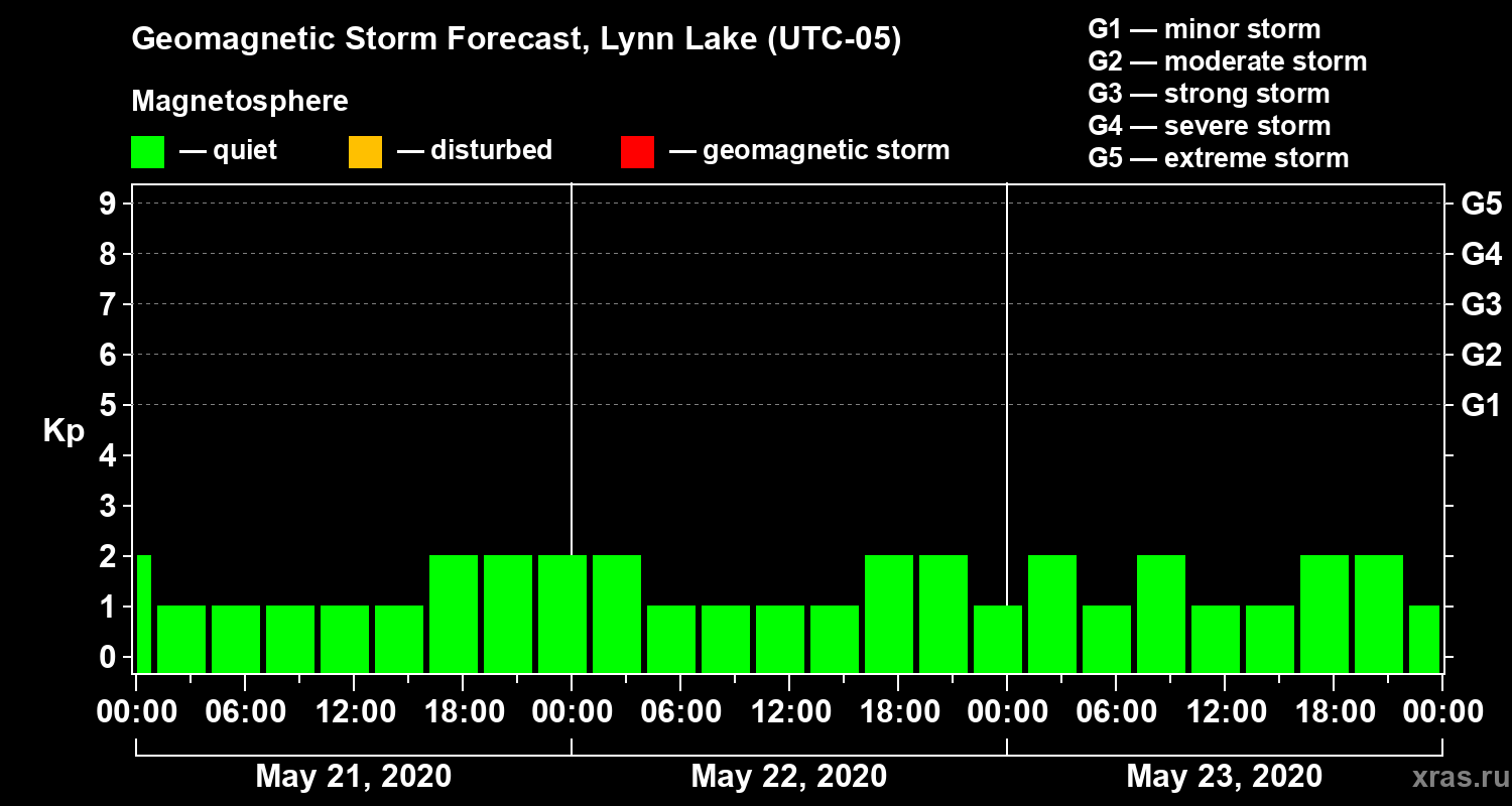 Geomagnetic storm forecast in Lynn Lake for May 21, 2020