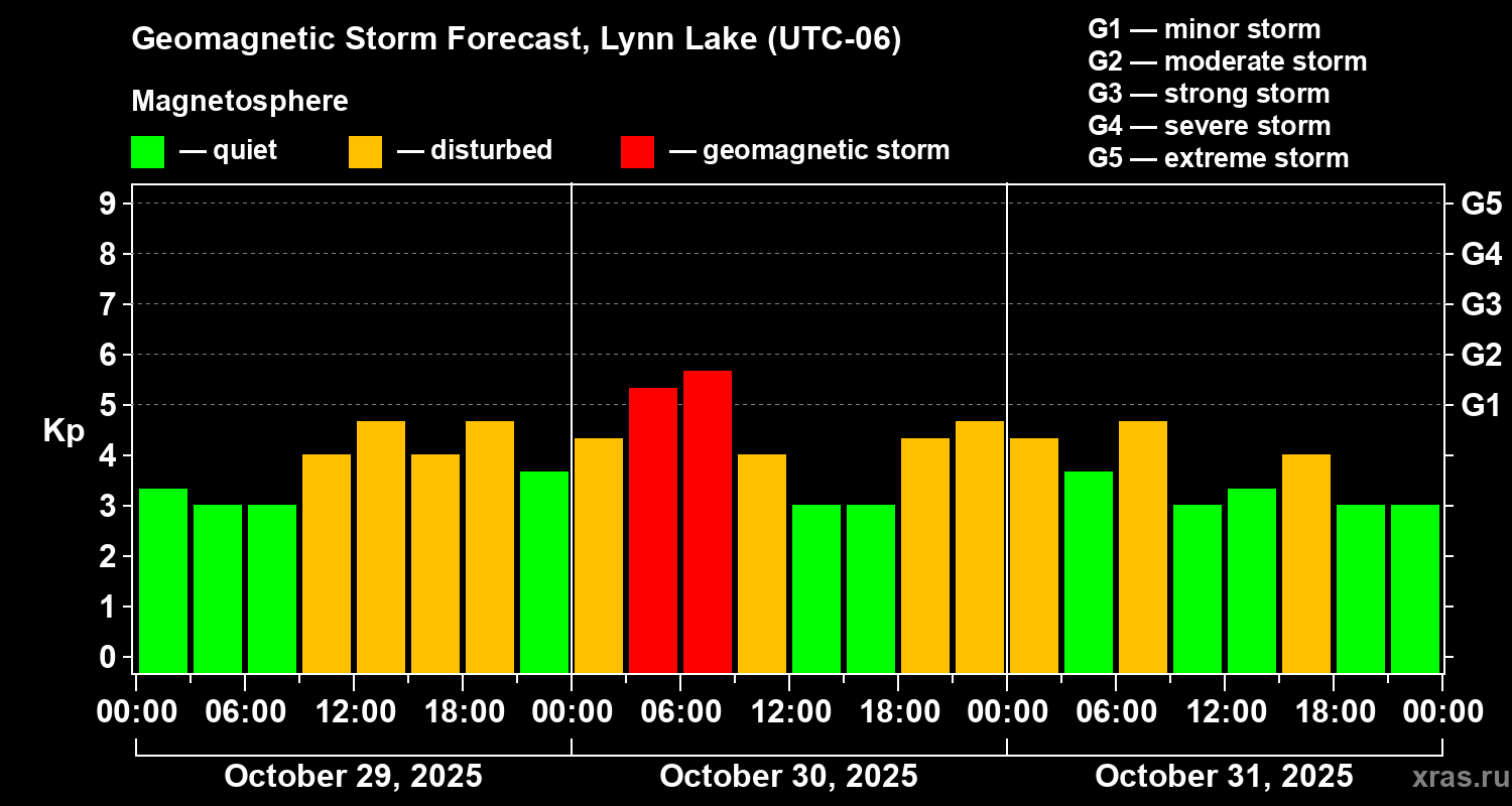 Geomagnetic storm forecast in Lynn Lake for Oct 29, 2025