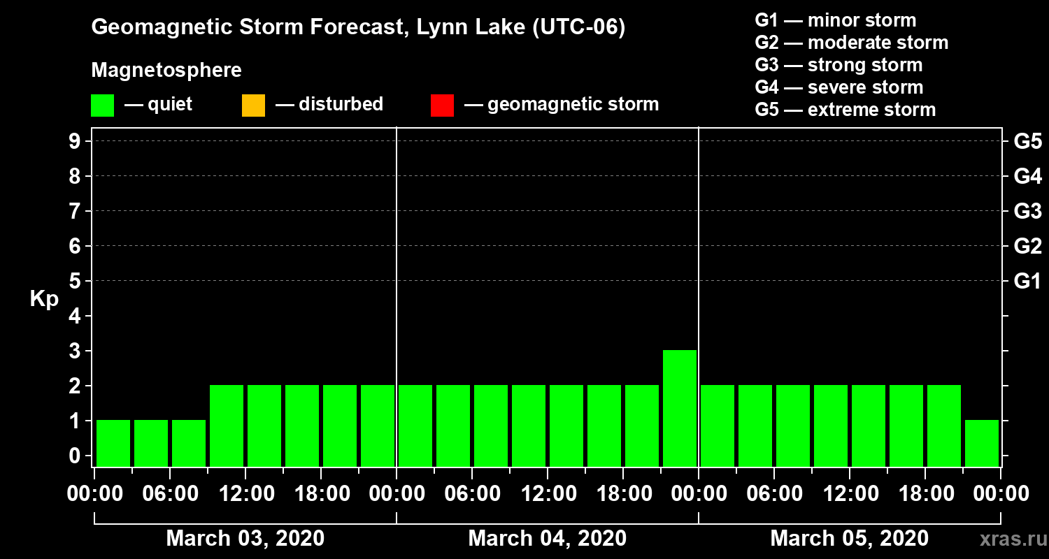 Geomagnetic storm forecast in Lynn Lake for Mar 03, 2020