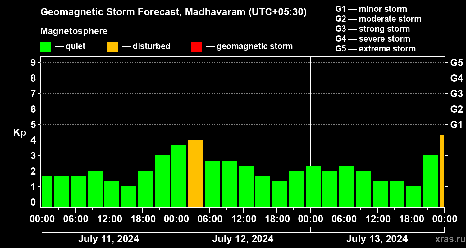 Geomagnetic storm forecast in Madhavaram for Jul 11, 2024