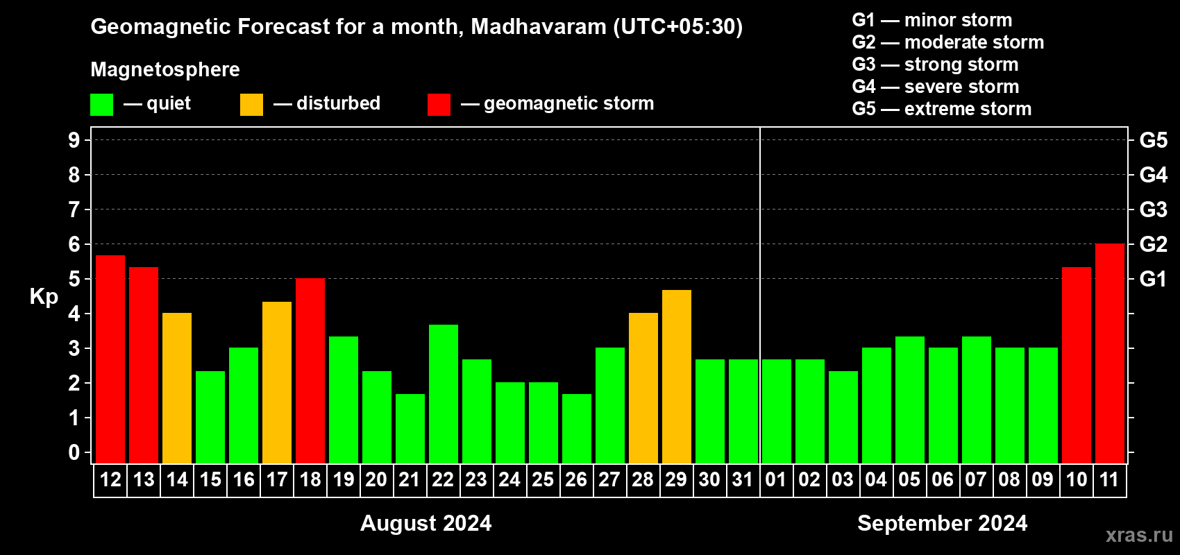 Geomagnetic storm forecast in Madhavaram for Aug 12, 2024