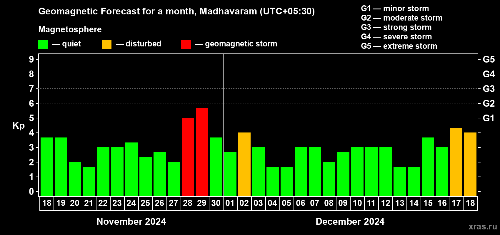 Geomagnetic storm forecast in Madhavaram for Nov 18, 2024