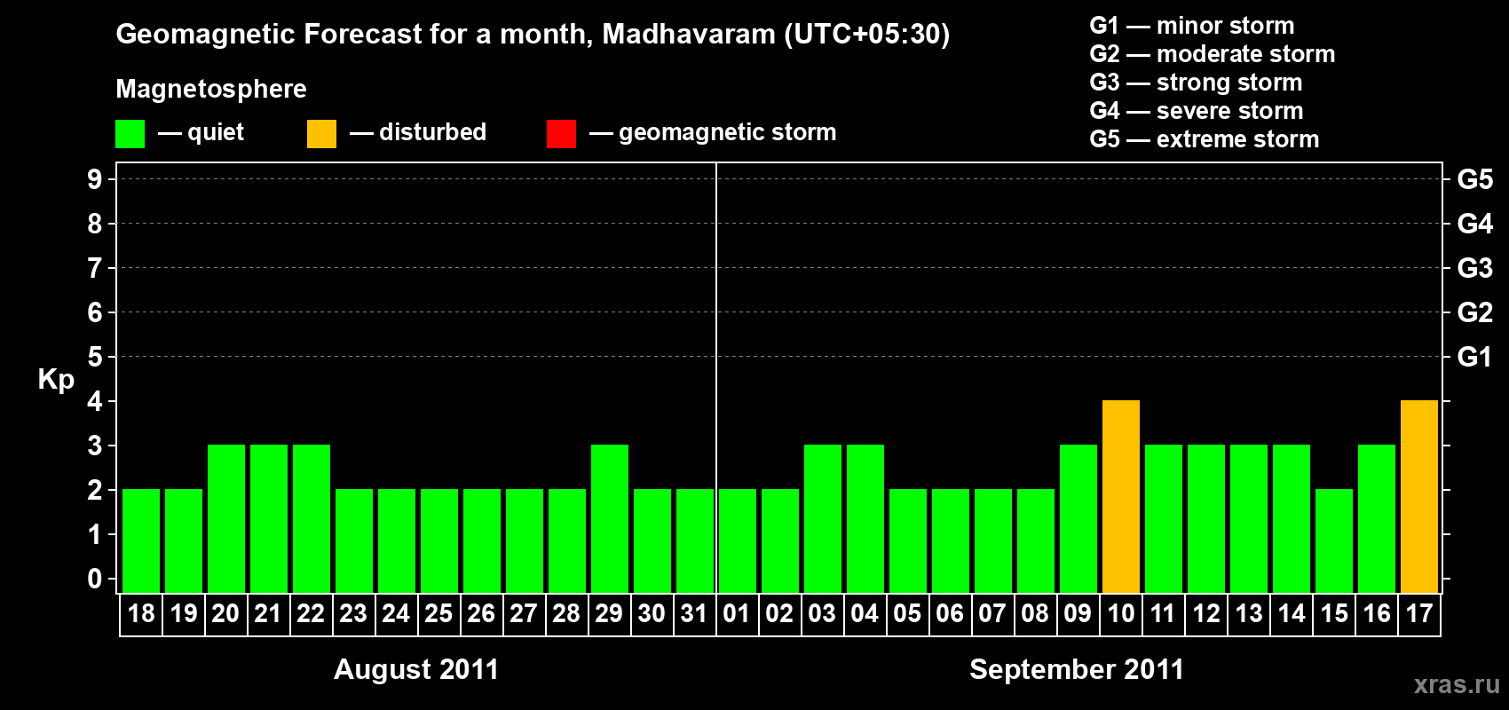 Geomagnetic storm forecast in Madhavaram for Aug 18, 2011