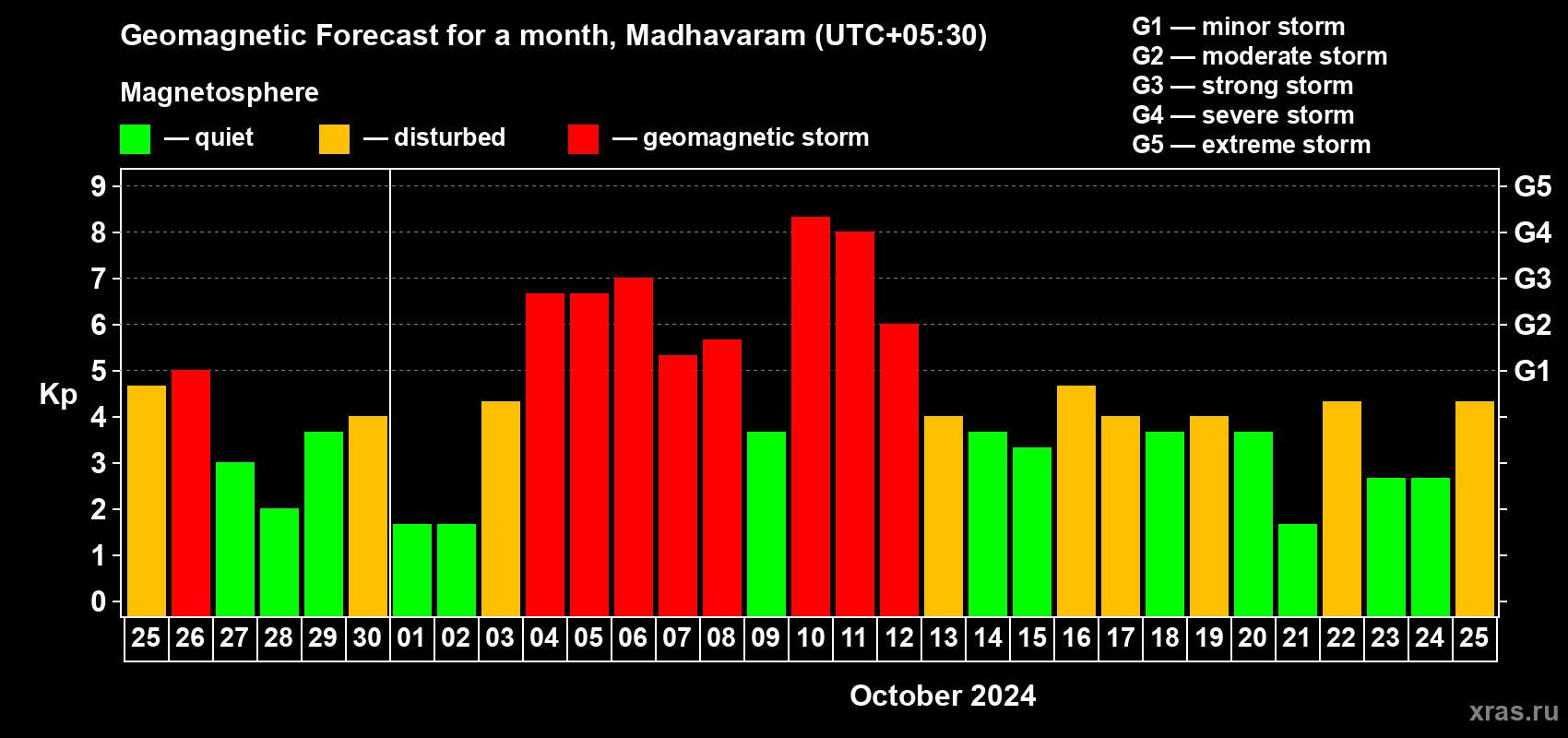 Geomagnetic storm forecast in Madhavaram for Sep 25, 2024