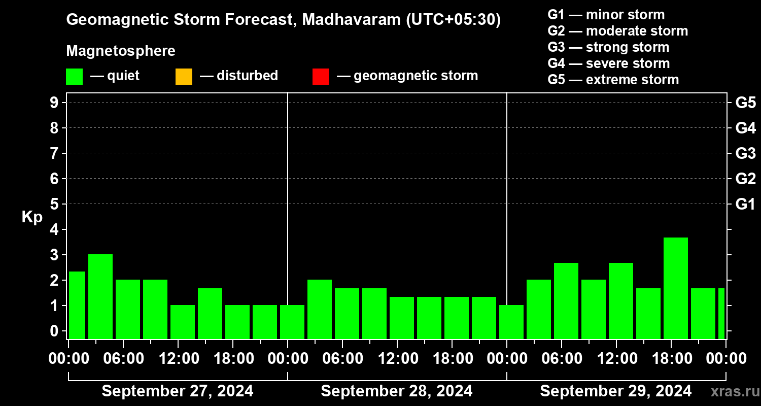 Geomagnetic storm forecast in Madhavaram for Sep 27, 2024